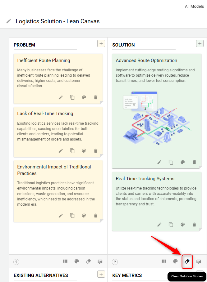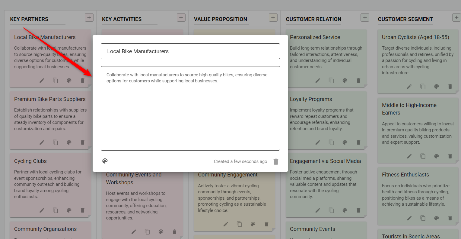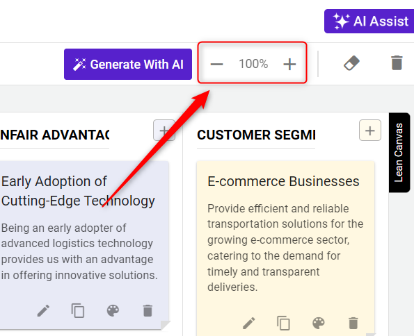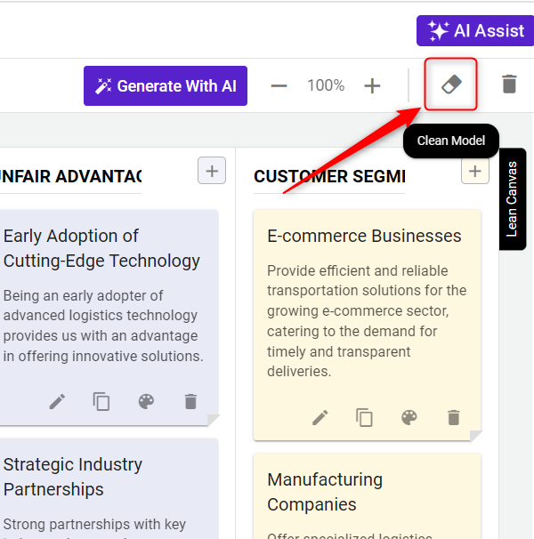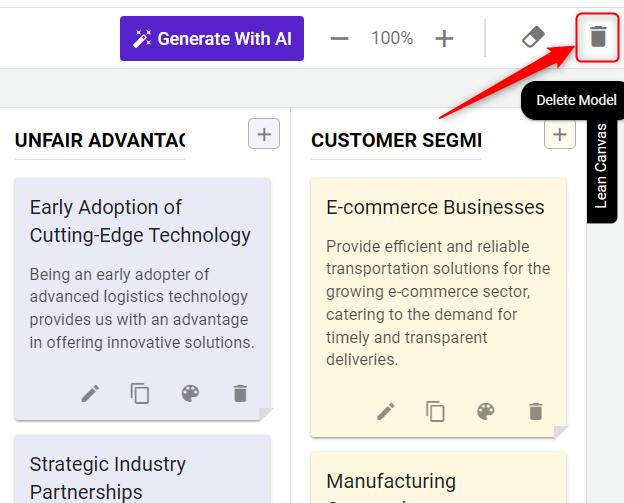 After creating your strategic model, the next phase is customization. With the flexibility to fully customize your model, you can edit text, adjust colors, remove elements, and much more to align it perfectly with your business strategy.
