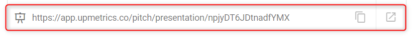 - Presentation link: This link presents your pitch deck in a presentation-style format, offering a more immersive and structured viewing experience, similar to a slideshow.