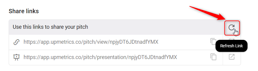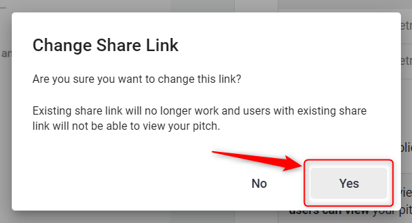 By using this option, you can generate a new link for your pitch deck, making the existing share link obsolete. This ensures that anyone with the old link will no longer be able to view your pitch, providing an extra layer of security and control over your presentation's accessibility.