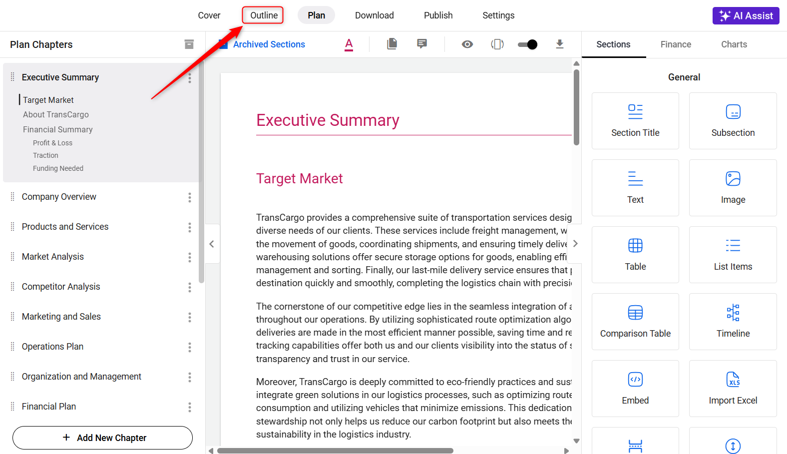 Steps to Customize and Edit the Outline in Your Business Plan: