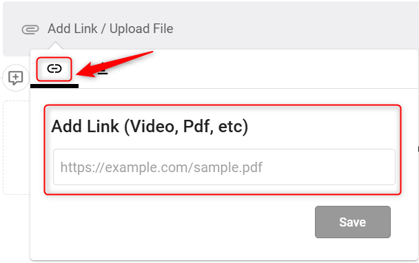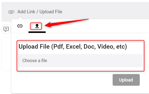 - For Embed, add your Link directly or choose the Upload File option accordingly.