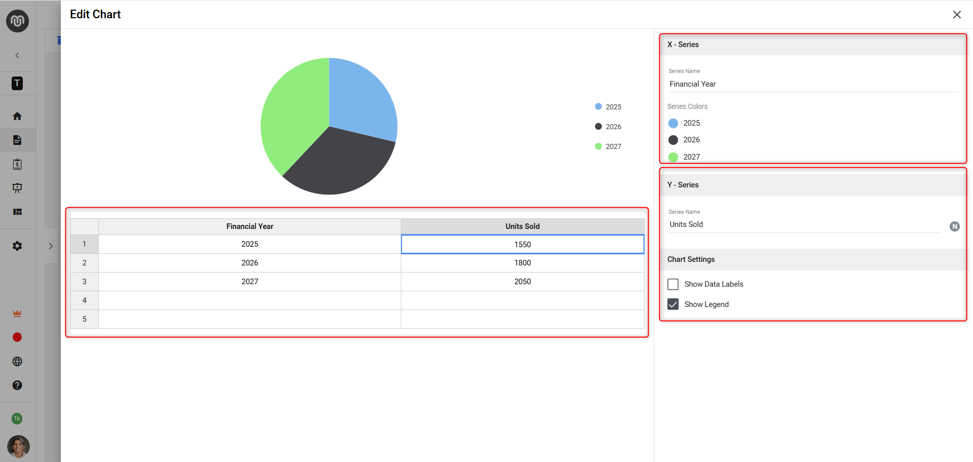 Opt for the Finance Chart section to add financial charts, making your data visually appealing and easier to digest.
