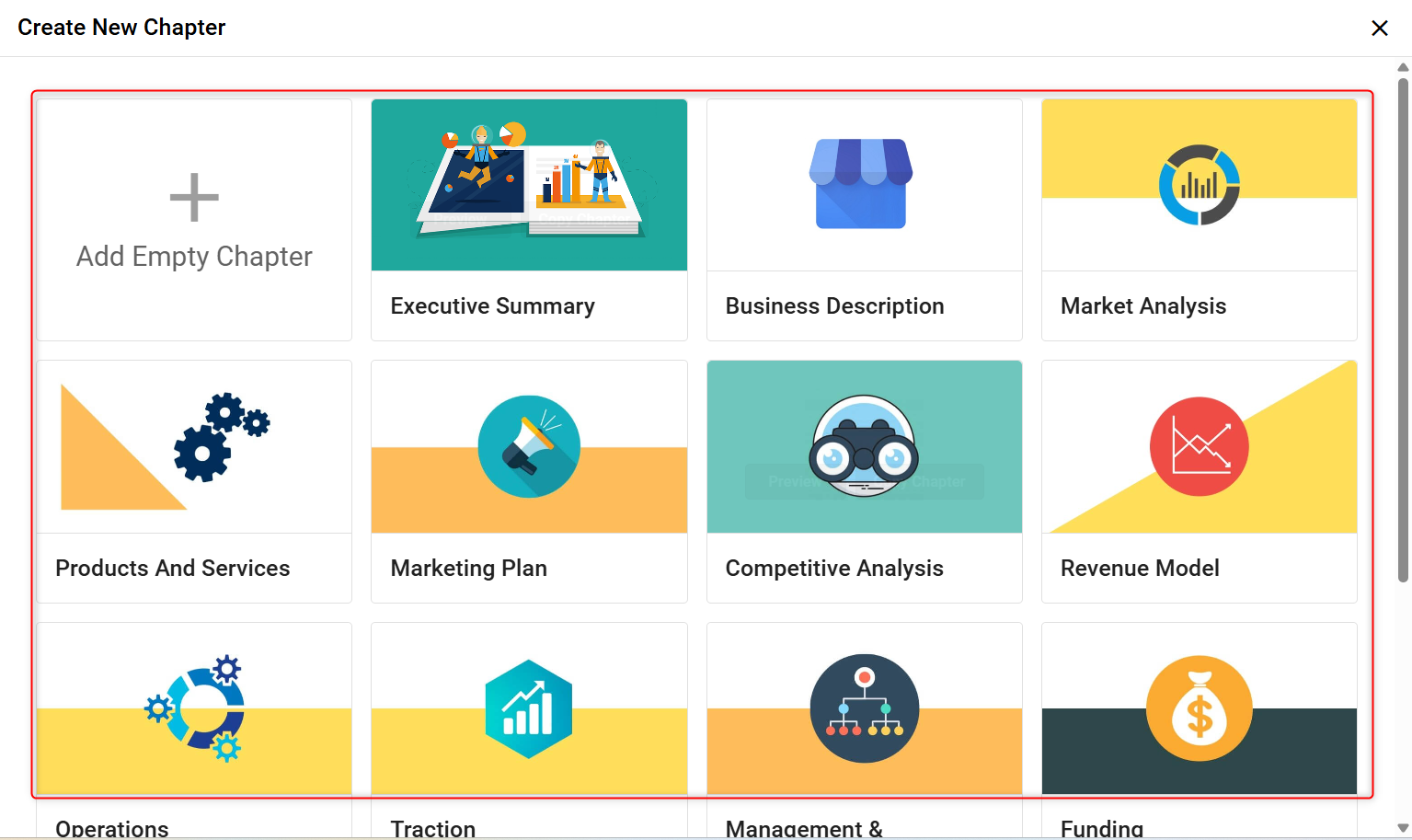 After clicking on “Add New Chapter”, you'll be presented with a range of chapter templates available.