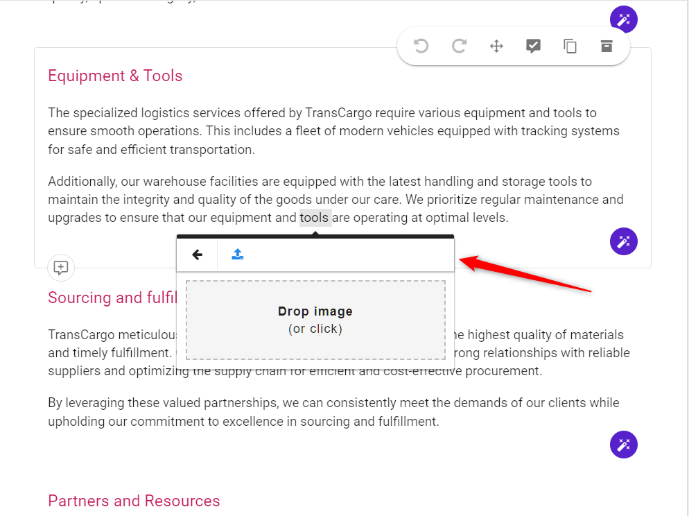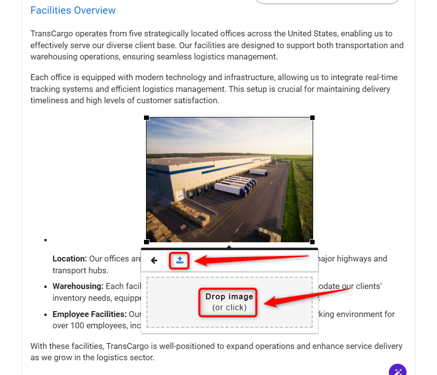 After activating the insert option, you can either select an image file traditionally or use the drag-and-drop feature to add your image.