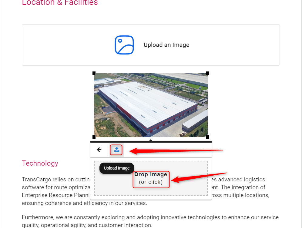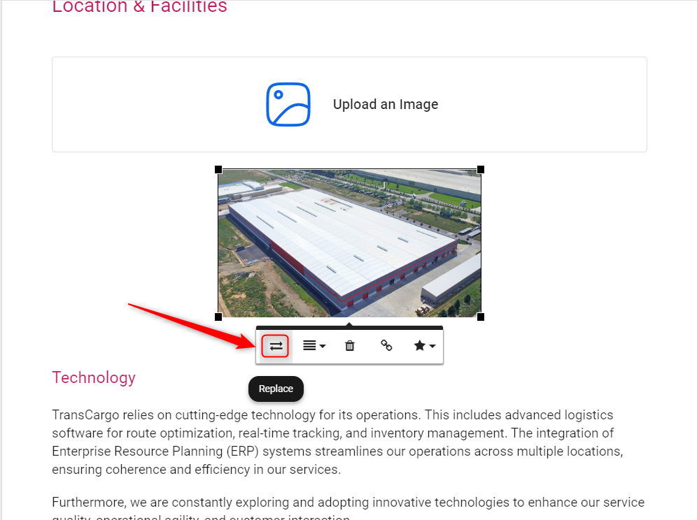 After clicking on the Replace option, you can upload an image by either selecting a file manually or using drag-and-drop for quicker addition.