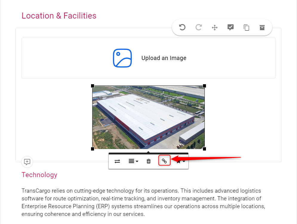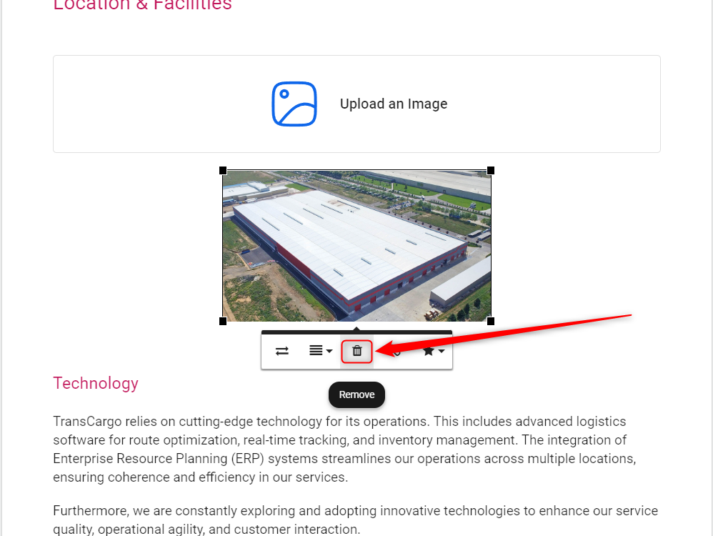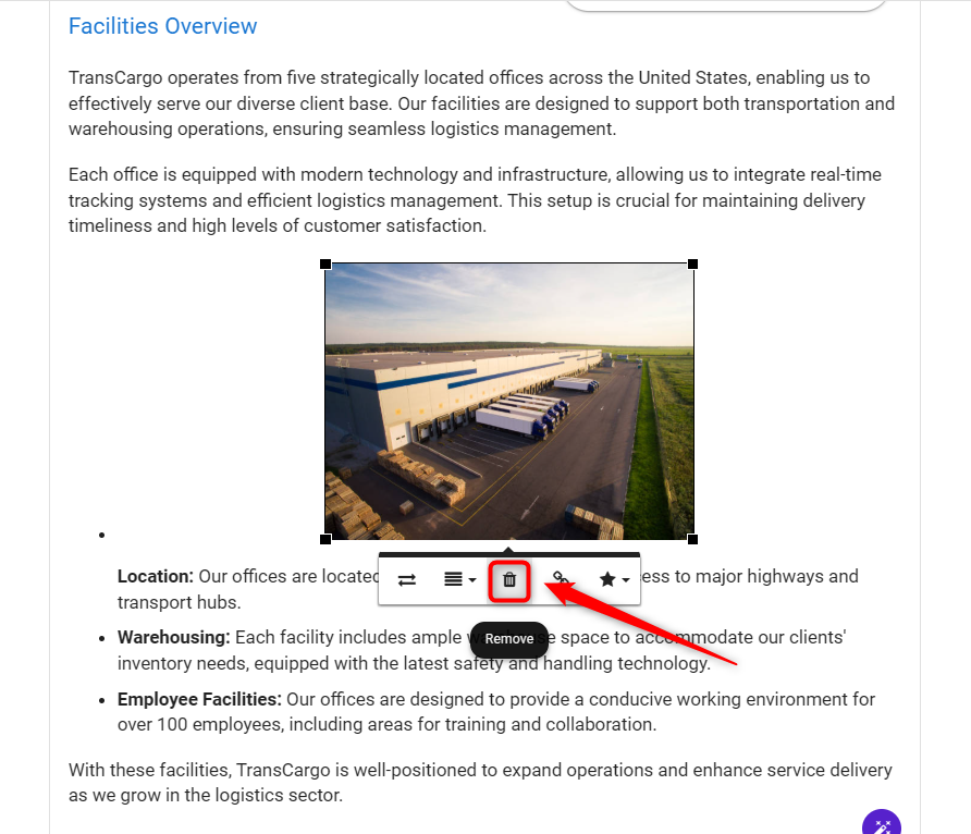 - Open your business plan and scroll to the section containing the image you wish to remove.