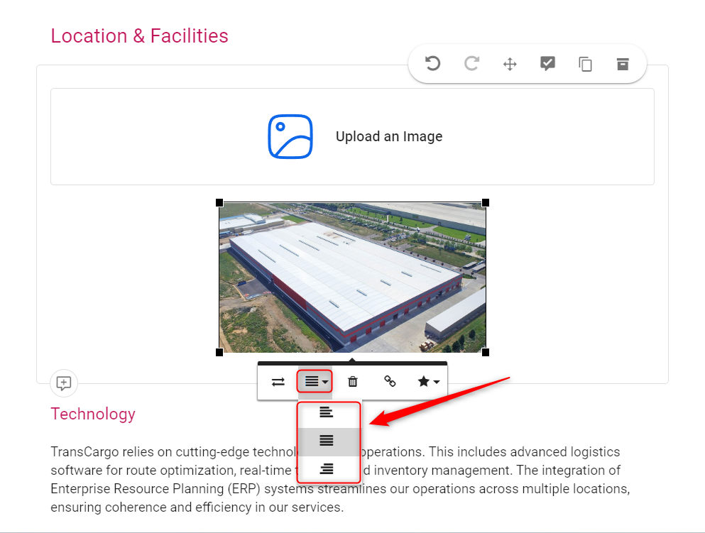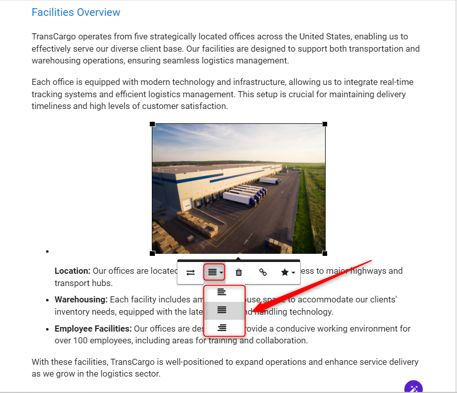 You can align the image to the left, right, or center, ensuring it complements the surrounding text effectively.