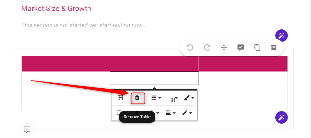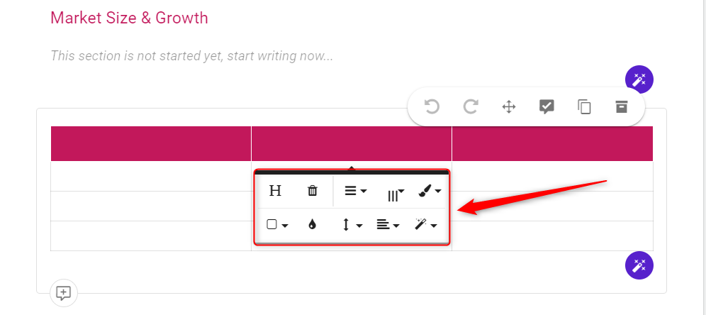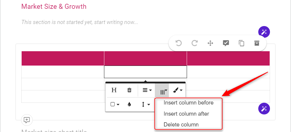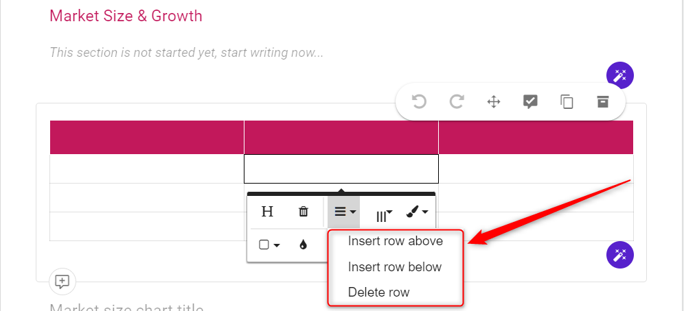 Adding a table to your business plan is straightforward. Simply use the Table elements to insert a table.
