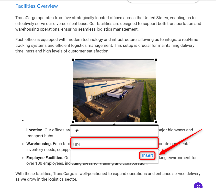 Add the URL in the given field and click on Insert to save it.
