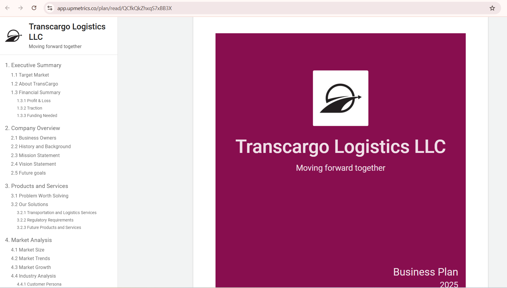 This option opens your Business plan in a new tab for a quick preview. Here’s what the business plan will look like.
