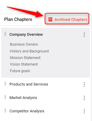 Within your business plan, locate and open the section of View Archived Chapters where archived chapters are stored.