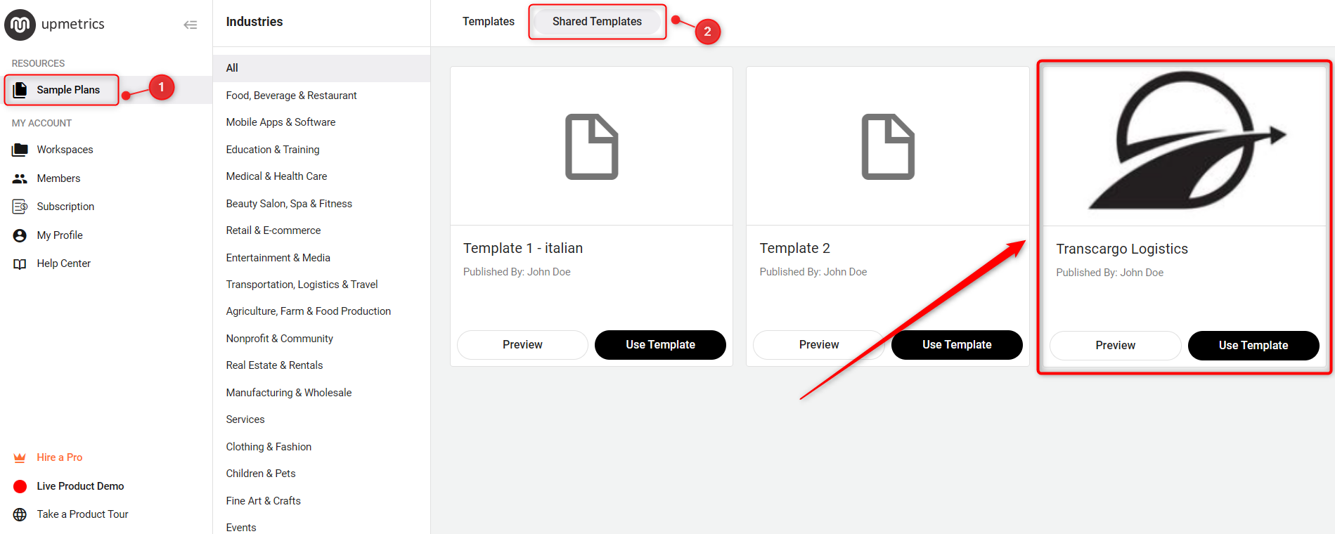 After publishing, find the template listed in the "Sample Plan" section within "Shared Templates," available to all invited Account Members.