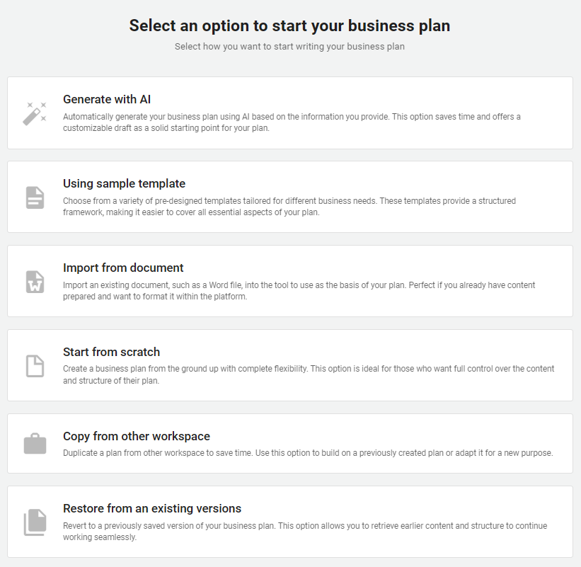 Ans. Yes! We allow you to design your own customized business plan templates. You can tailor a template to your specific needs and share it with others, enabling them to leverage your template to create their own detailed business plans. Please note, this feature is exclusively available with the Professional plan.