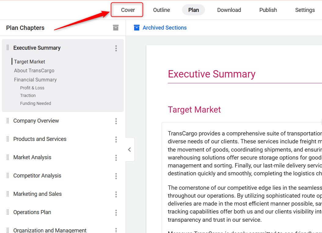The journey to a standout business plan begins with a unique cover page. Uploading a custom cover page is your first step toward creating a unique Business Plan. This brief introduction will guide you through the benefits and steps of adding your own cover page and setting your business plan apart right from the start.