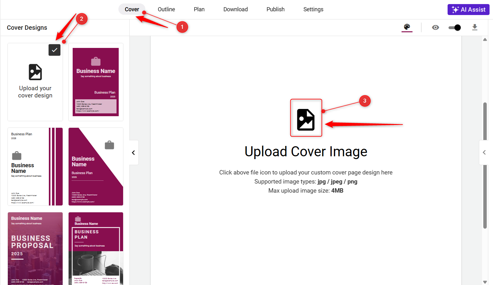 By following these steps, you can easily upload and customize your own cover page, adding a personal touch to your business plan.