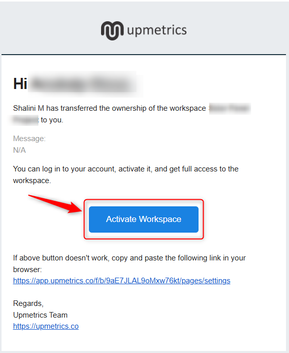 They can finalize the transfer by clicking on "Activate Workspace" in the email, at which point the workspace ownership will be officially updated.