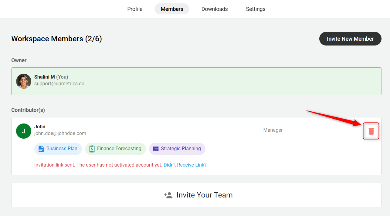 Contributors have the capability to work on projects, making them ideal for individuals directly involved in the development of your business plan or other documents. They cannot, however, manage workspace settings or invite new members.