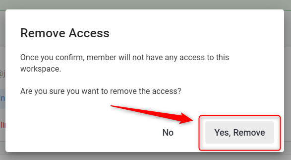A confirmation pop-up will appear. Click on the "Yes, Remove" option to finalize the removal of the member from your workspace.