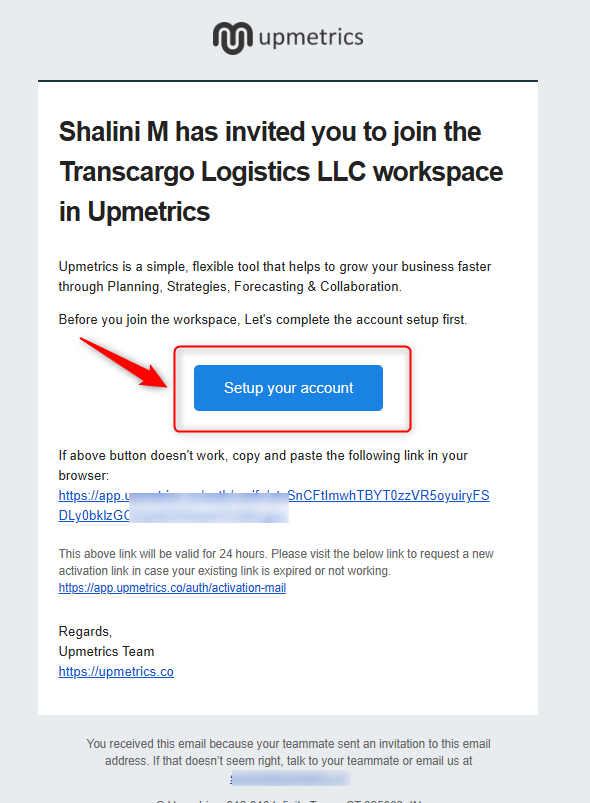 Following their invitation, the User will receive an invitation email in their inbox. This email contains a link that they can follow to join the workspace and easily engage with the team.