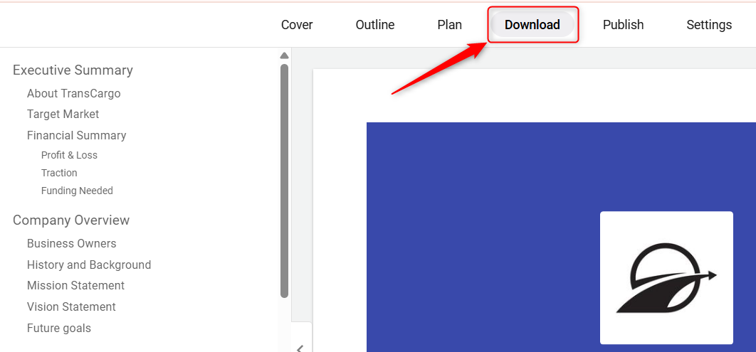 Within the Business Plan/ Pitch Deck section, locate and click on the Download section.