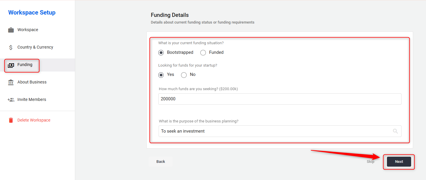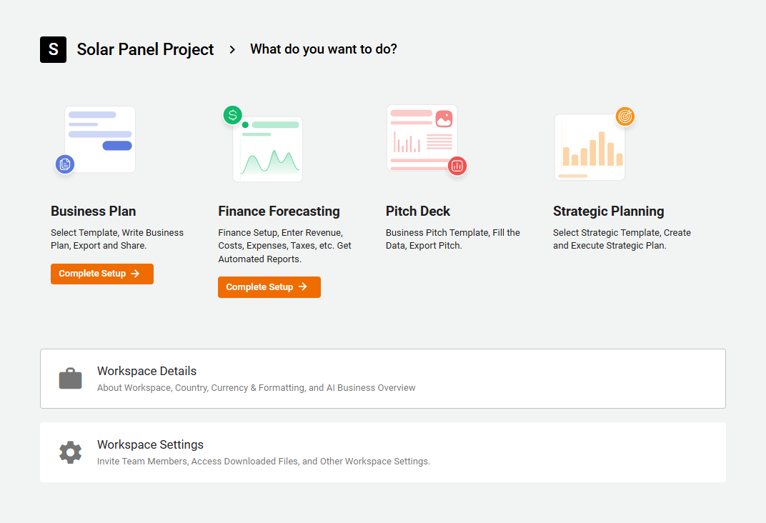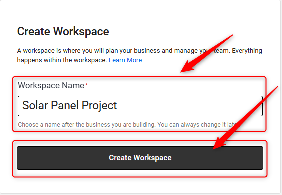 Once your Workspace is set up, move on to writing your Business Plan, Click here to start writing your Business Plan