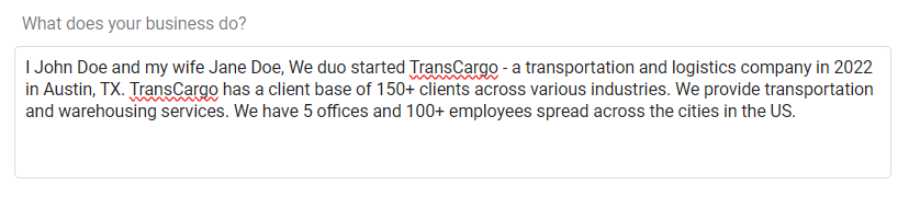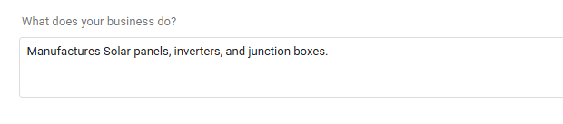 - What does your business do?: Here, you can enter a description of your business, including your services, mission, and target audience.