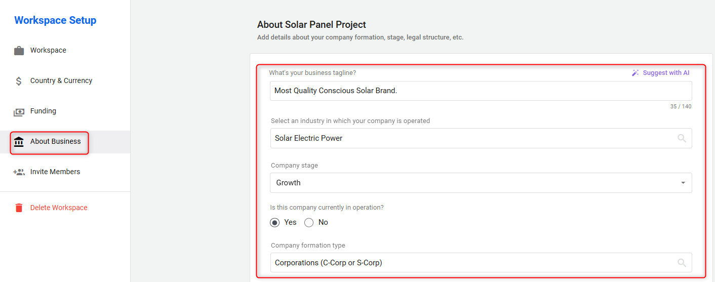 - Company Stage: Indicate whether your business is in the idea, startup, growth, or established stage.