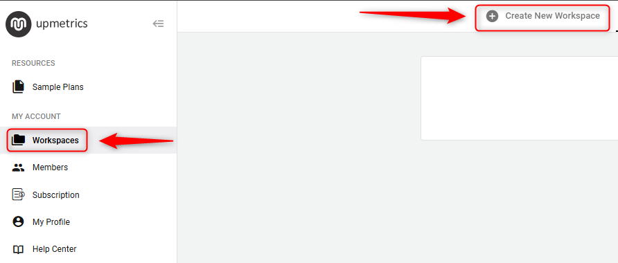 After logging in to your account, locate the Workspaces section on the left sidebar and click on the + Create New Workspace option.