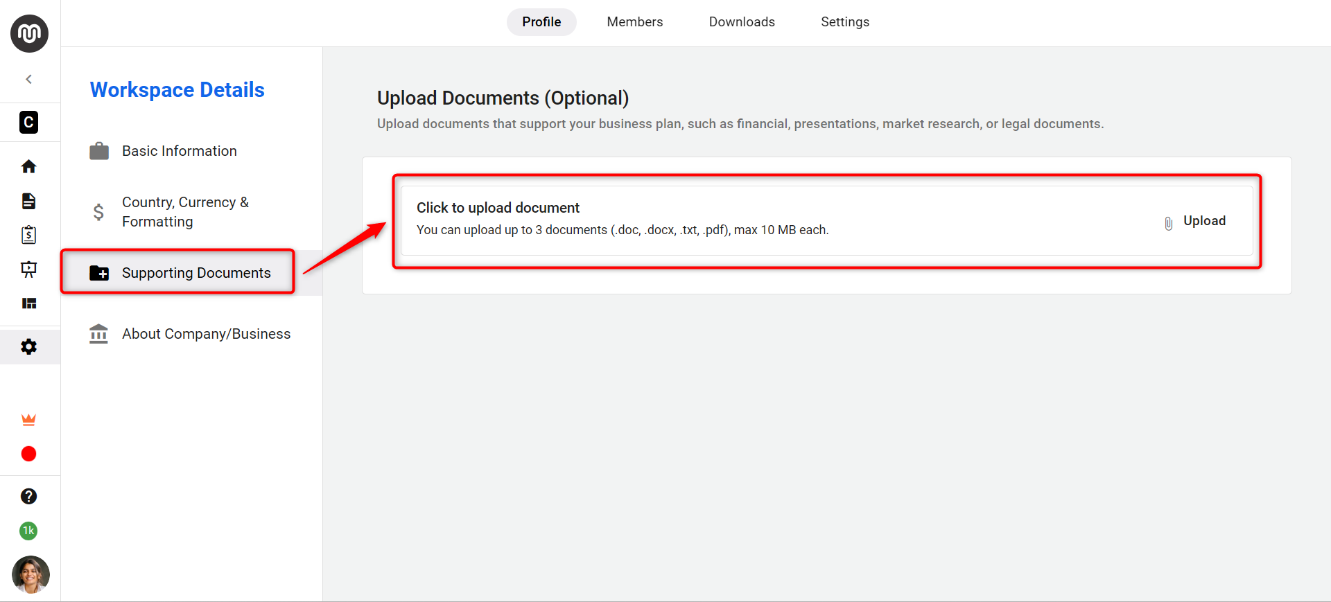 In the Supporting Document section, You can attach supporting documents to provide more insights about your business, which helps the AI generate a more accurate and tailored business plan.