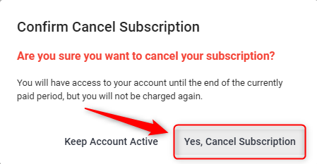 Click on Yes, Cancel Subscription to finalize the cancellation of your subscription.
