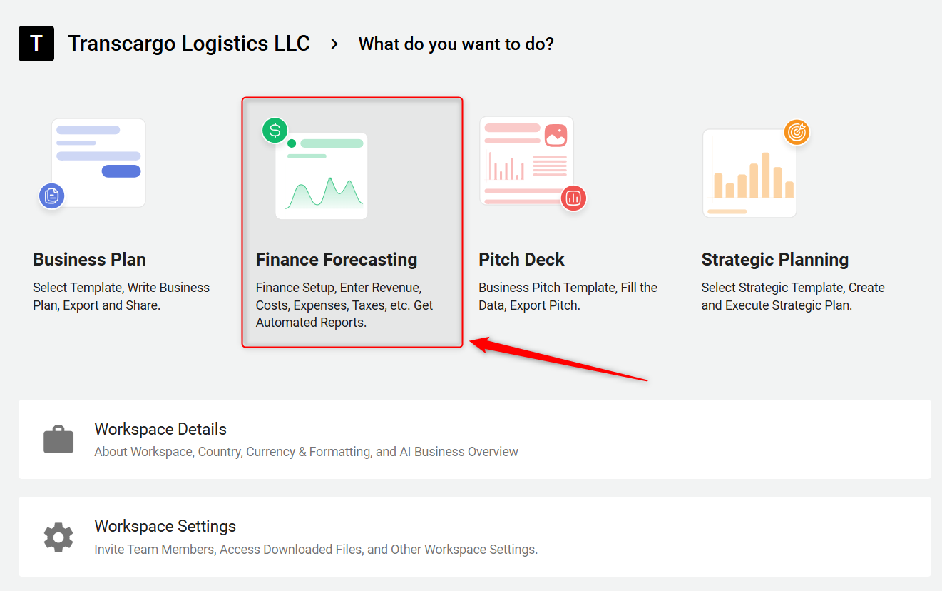 Log in to your account and navigate to the "Finance Forecasting" module.