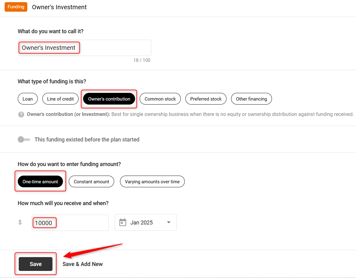 If the investment comes directly from the owner or founder, as a personal investment, use the "Owner's Contribution" option to add this amount.