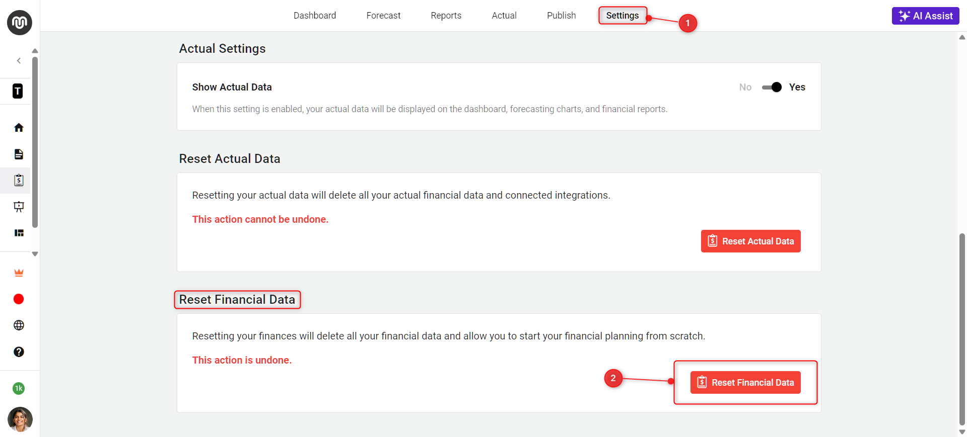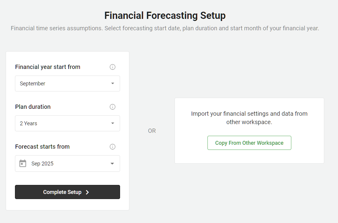 Following the reset, you'll be redirected to the Financial Forecasting Setup page to reconfigure your financial projections.