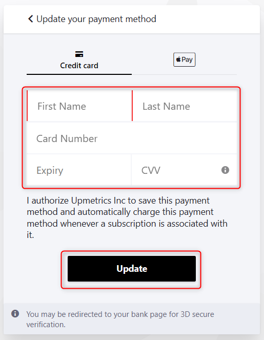- After you've entered all the necessary details, hit the "Update" button to save your new payment information. Your payment details will be immediately updated in the system.
