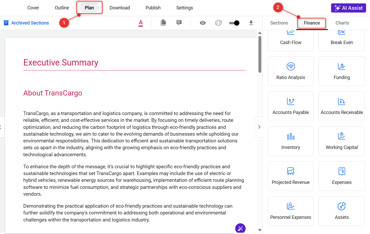 TIP: To add finance reports and charts to your business plan, check out this help guide.
