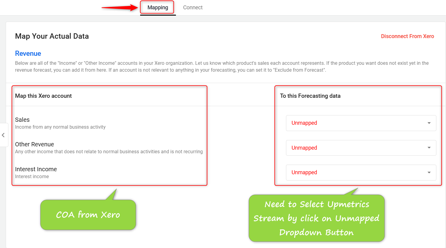 Understanding Mapping Options in Upmetrics with Xero Integration: