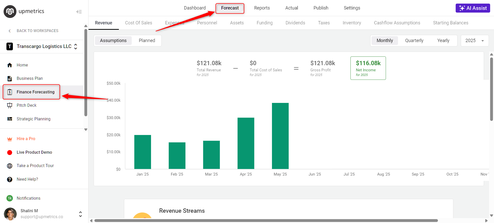 Log in to your account and go to the Finance Forecast module. From here, navigate to the Forecast section.