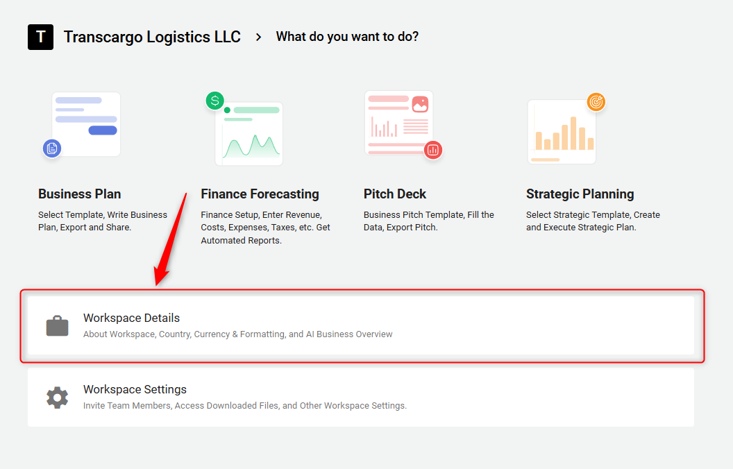 Once you've updated the necessary information, you're all set to move forward with your AI-assisted Business Plan creation.