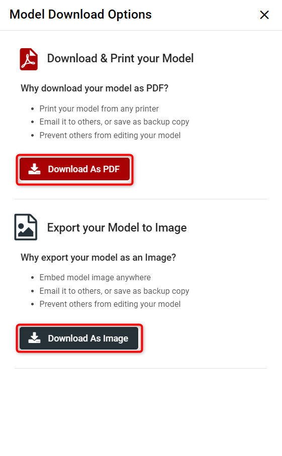 A pop-up window will appear, giving you the option to download the Strategic model as either a PDF or an image.