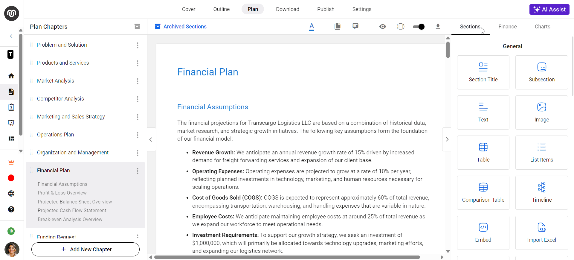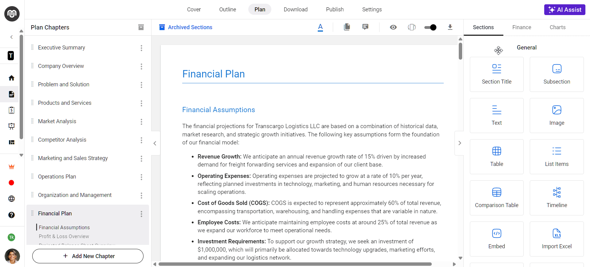 The Financial Analyst focuses on the financial aspects of your business plan. This agent provides an in-depth analysis of financial statements, revenue forecasts, expense tracking, and profitability assessments.