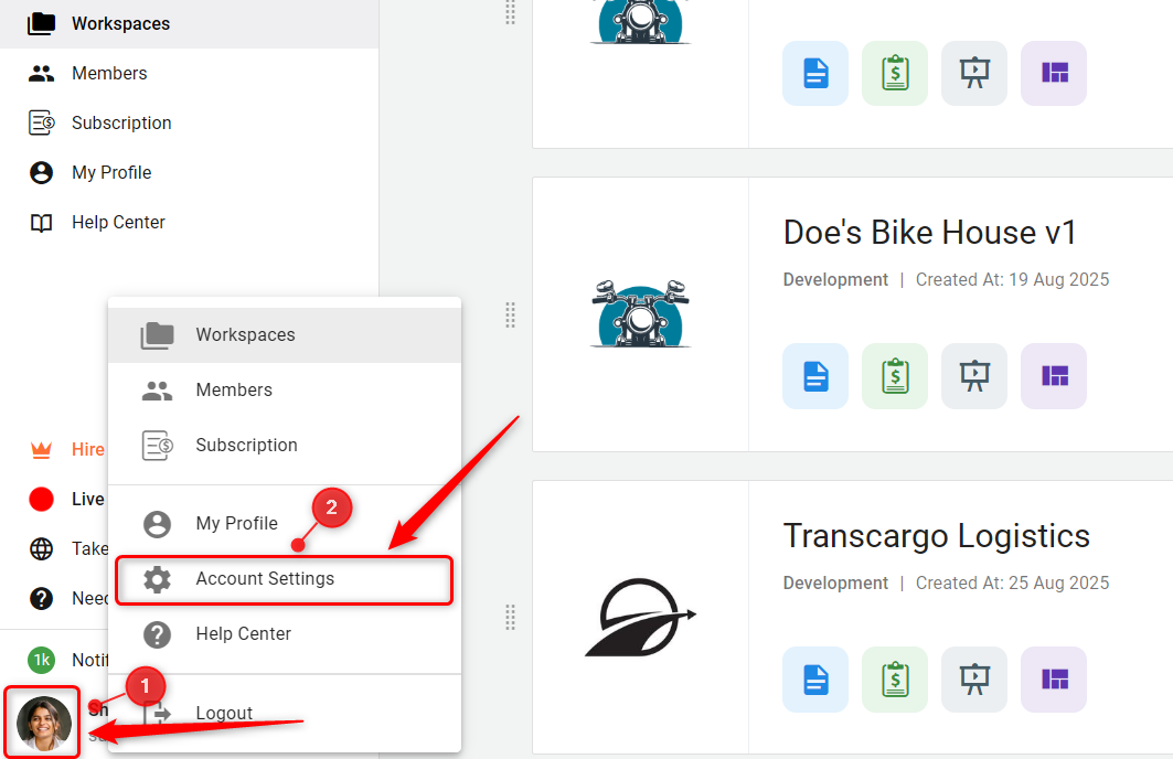Log in to your account and click on your profile icon located at the bottom left corner of your dashboard. From the dropdown menu, select the Account Settings option.