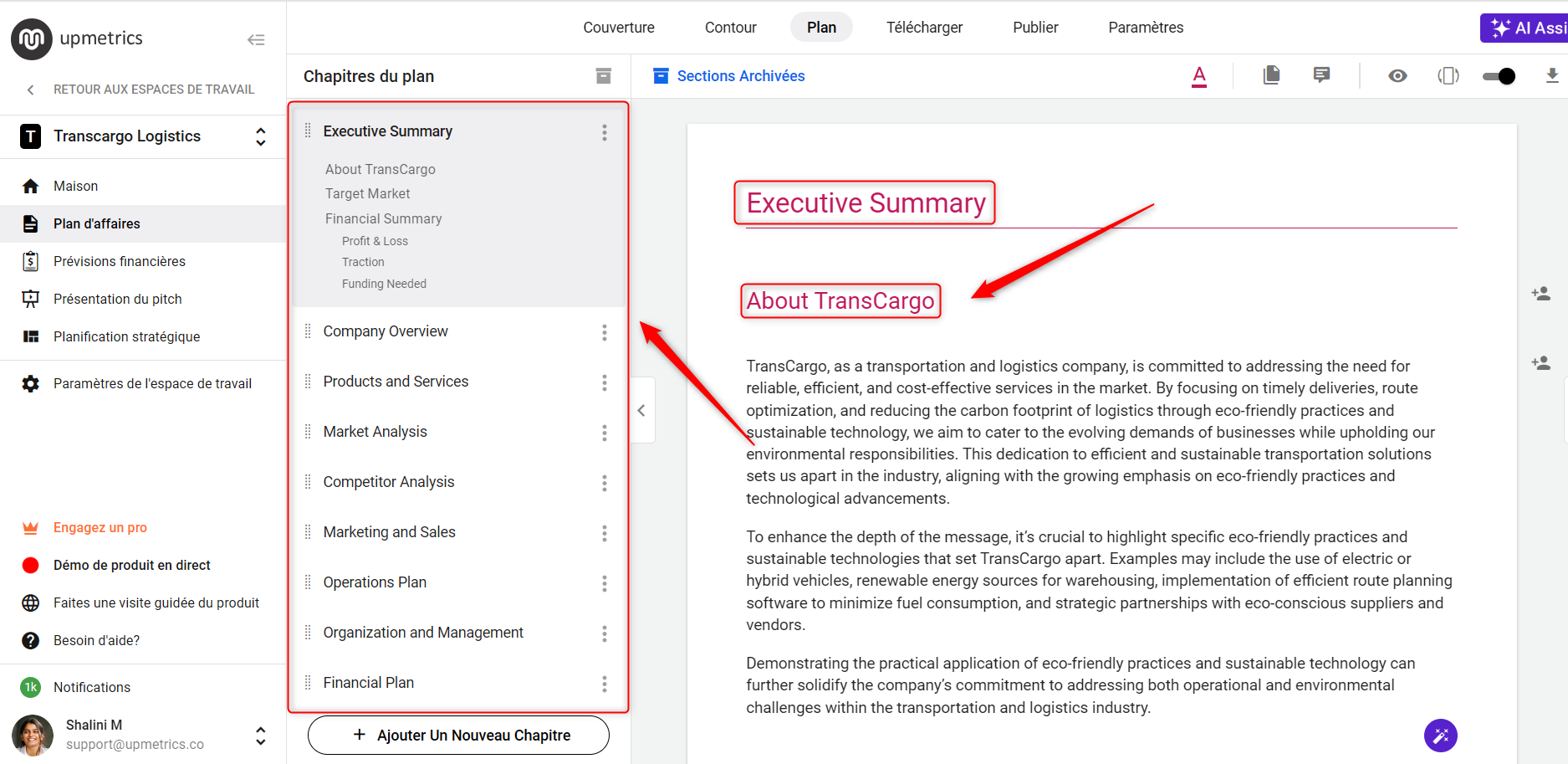 Additionally, when adding new chapters or sections to your business plan, you are free to enter titles directly in any language you prefer since they will be in English.