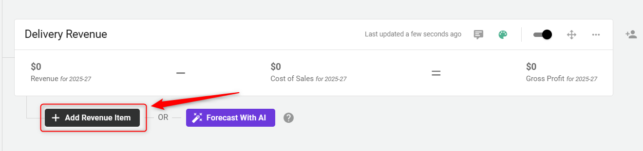 A forecast form will open, enter the Revenue Stream title, and continue.
