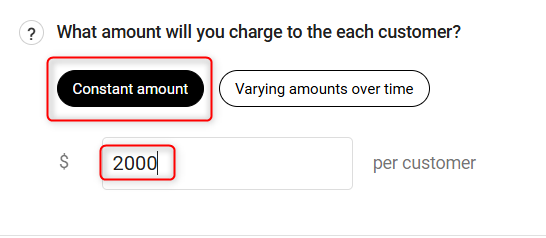 Price: Enter the amount you will charge for each customer of this service. You can enter a constant price or varying prices over time: