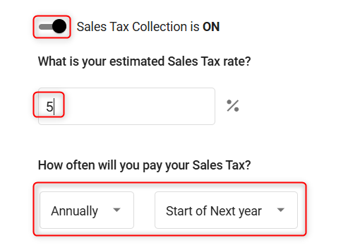 Enter the sales tax rate applied. The system will calculate your taxes and add them to the forecast automatically.