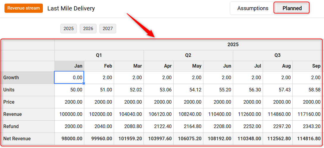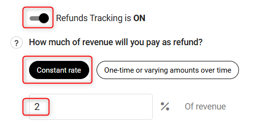 Refund: Unexpected refund risks are involved with your service businesses if you are going to provide a refund to your customers. Let's enter the refund rate you estimate over the revenue generated by Revenue Stream: