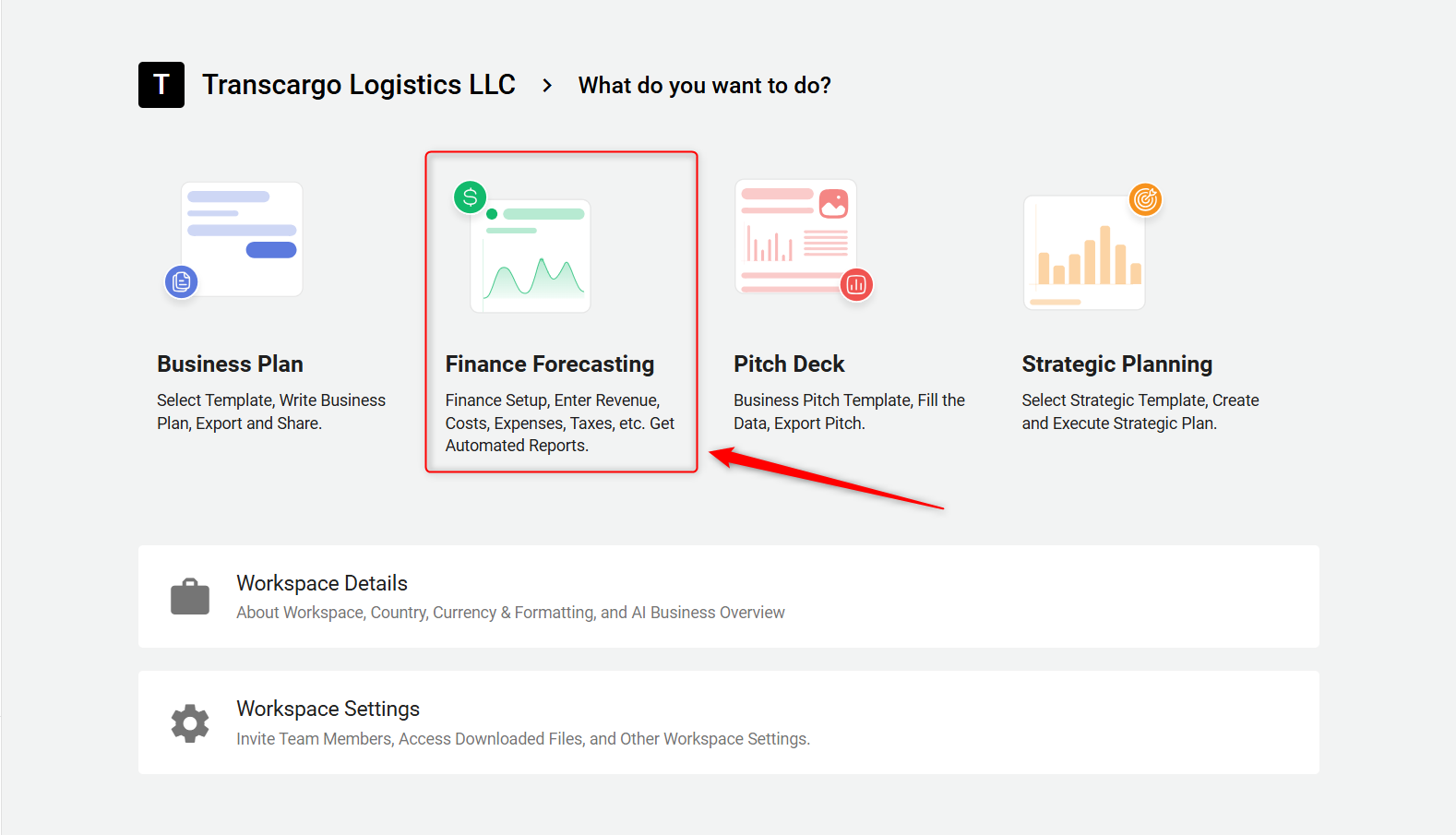 From the workspace menu, click on the Finance Forecasting module to open it.