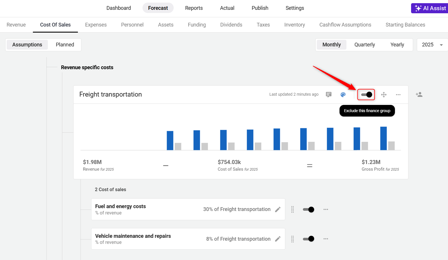 Now, utilize the Include/ Exclude options available for each finance item to simulate different financial outcomes.