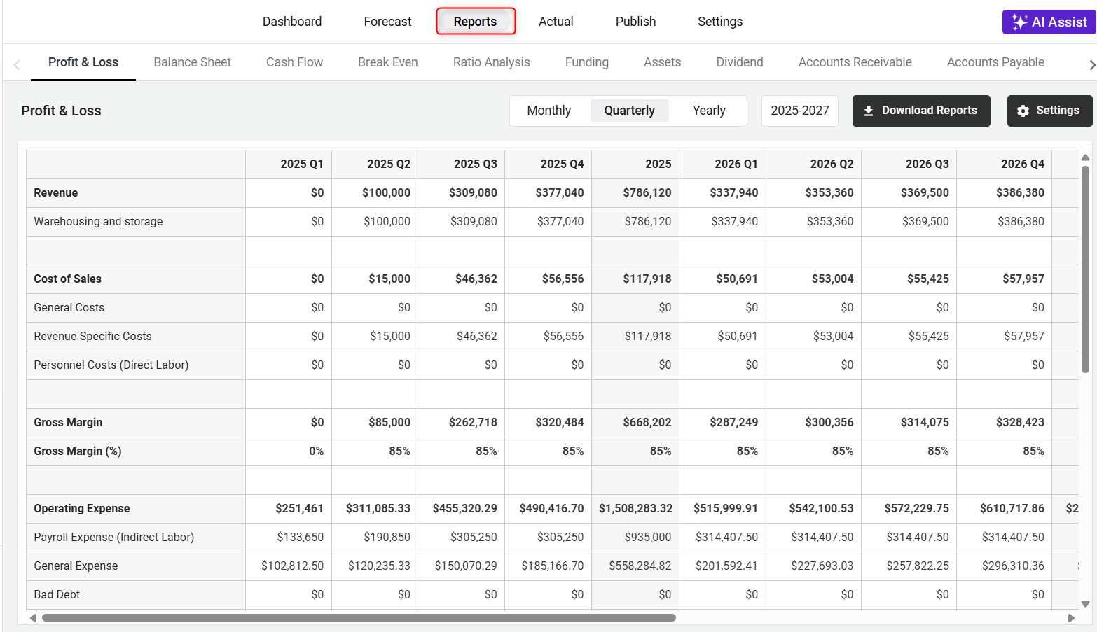 Adapting to changes in the business world is essential, and scenario planning helps you prepare for what's ahead. This feature allows you to see how changes in key financial areas could affect your business's future.