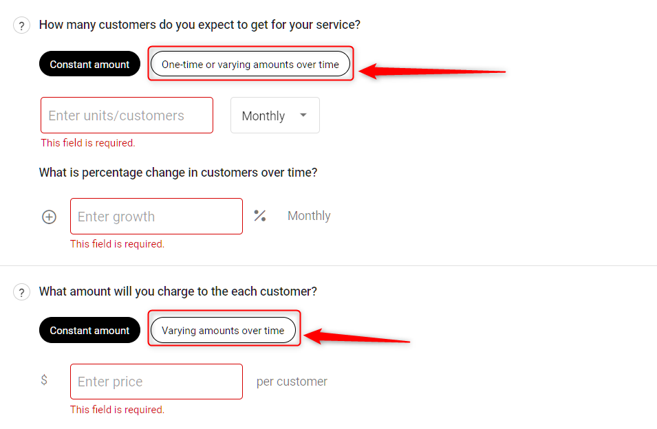 Forecasting varying amounts over time allows you to create more realistic and dynamic financial projections. Whether you're accounting for seasonal trends, changing prices, or team expansion, this method gives you full control over your plan’s accuracy and flexibility.